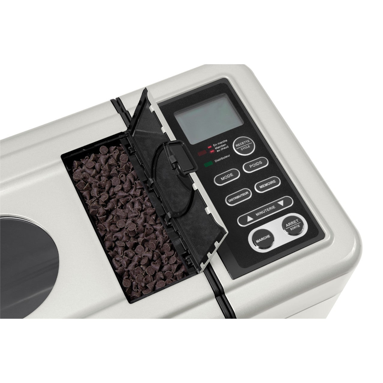 Intuïtieve bediening met groot LCD-scherm en automatische ingrediëntendispenser.