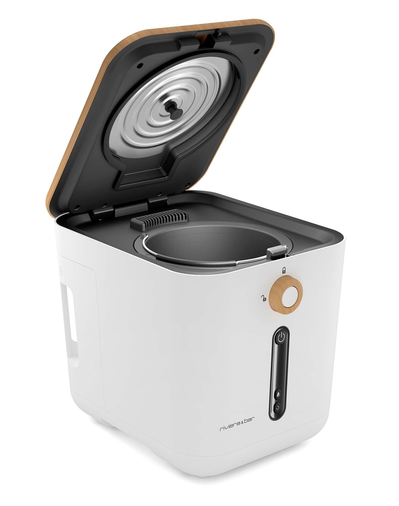 Kies voor een duurzame levensstijl met de Minska bio-afval verkleiner. Binnen enkele uren transformeert het uw organisch afval (fruit, groenten, koffiedik, eierschalen...) in droge en geurloze compost. Compact, stil en elegant, en past gemakkelijk in elke keuken. De technologie in drie stappen (drogen, vermalen, koelen) vermindert het afvalvolume tot 90%. Geen geurtjes, verspilling of vervanging van zakken meer: een eenvoudige, schone en efficiënte oplossing voor een afvalvrije keuken.