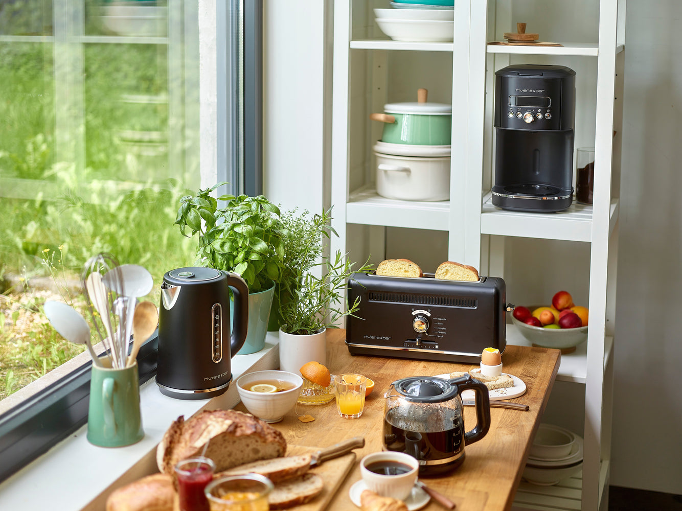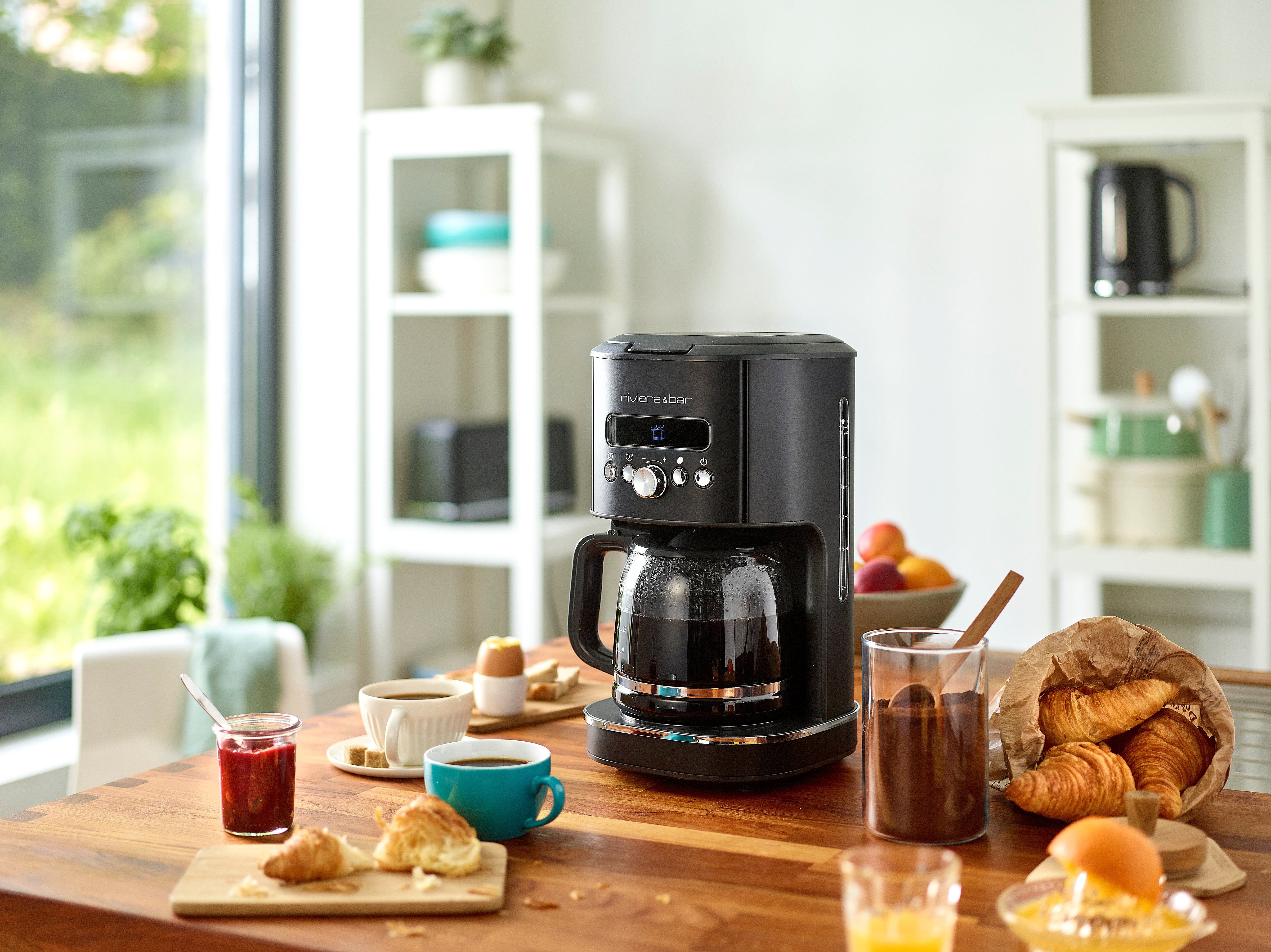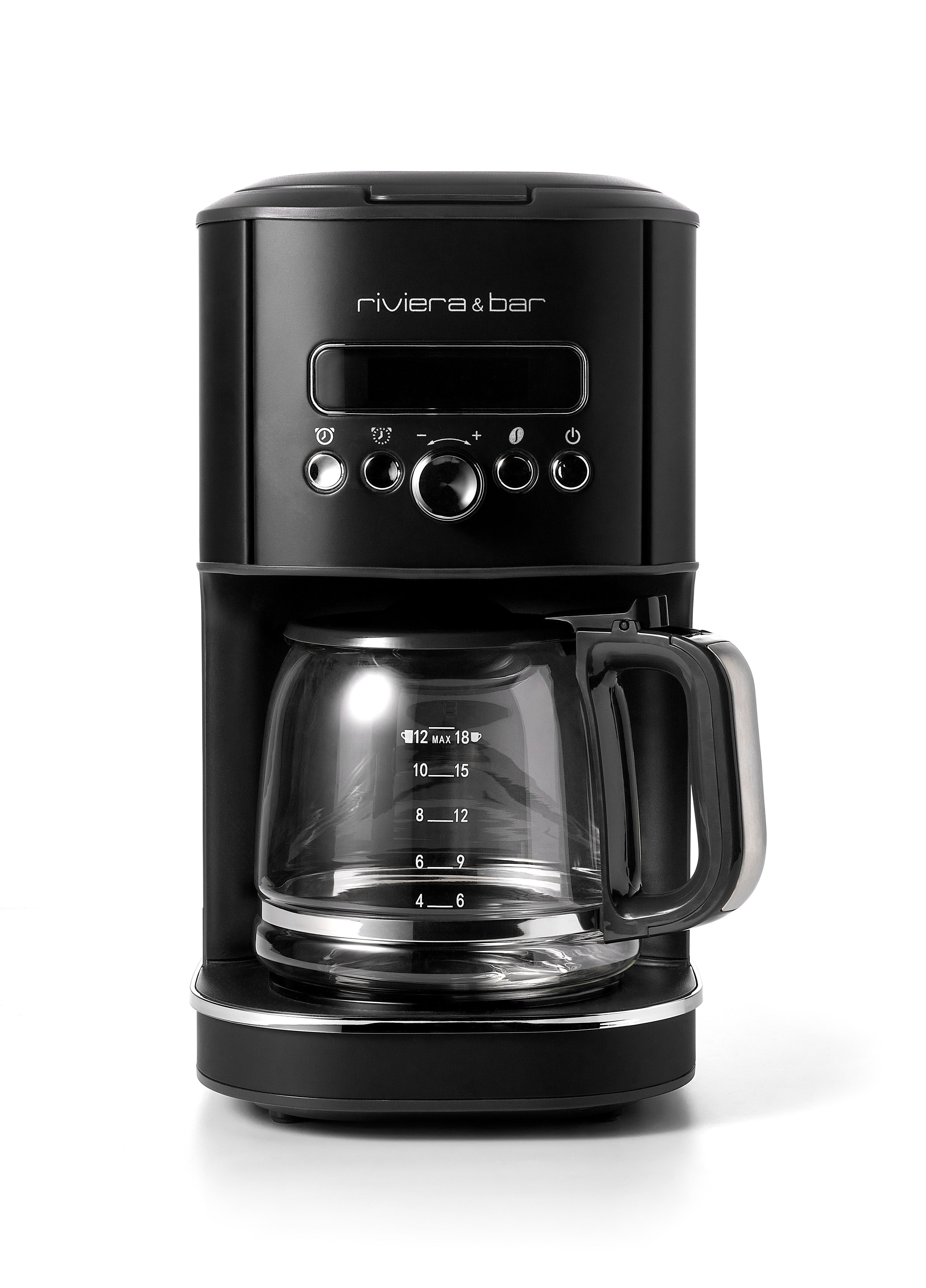 Geniet van de voortreffelijkheid van zelfgemaakte koffie met het riviera&bar programmeerbare filterkoffiezetapparaat in een verfijnd satijnzwart ontwerp. Dankzij de inhoud van 1,8 liter, de eenvoudige programmering en het zachte brouwen komen de aroma's optimaal vrij. Met zijn Aroma-functie, digitale display en antidruppelsysteem staat hij garant voor heerlijke koffie, klaar op elk moment, moeiteloos. Trakteer uzelf op een onvergelijkbare koffie-ervaring.