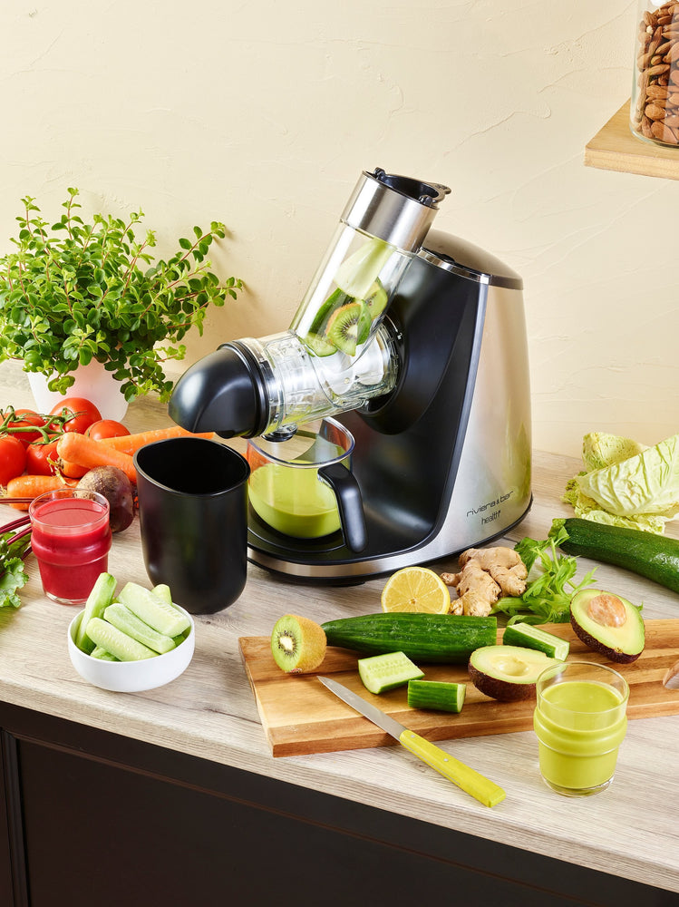 Voeg een vleugje verfijning toe aan uw dagelijks leven met de horizontale sapcentrifuge PEJ750 van riviera&bar. De keramische schroef behoudt de voedingsstoffen, het compacte roestvrijstalen ontwerp past overal en de brede trechter van 76 mm vergemakkelijkt het gebruik. Het apparaat is intuïtief te bedienen dankzij het aanraakscherm en maakt het ook mogelijk om sorbets en plantaardige dranken te bereiden. Eenvoudig te reinigen met vaatwasmachinebestendige onderdelen.