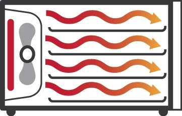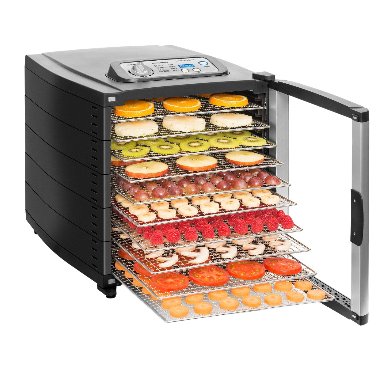 Voedseldroger met 10 verstelbare schalen en digitale timer.